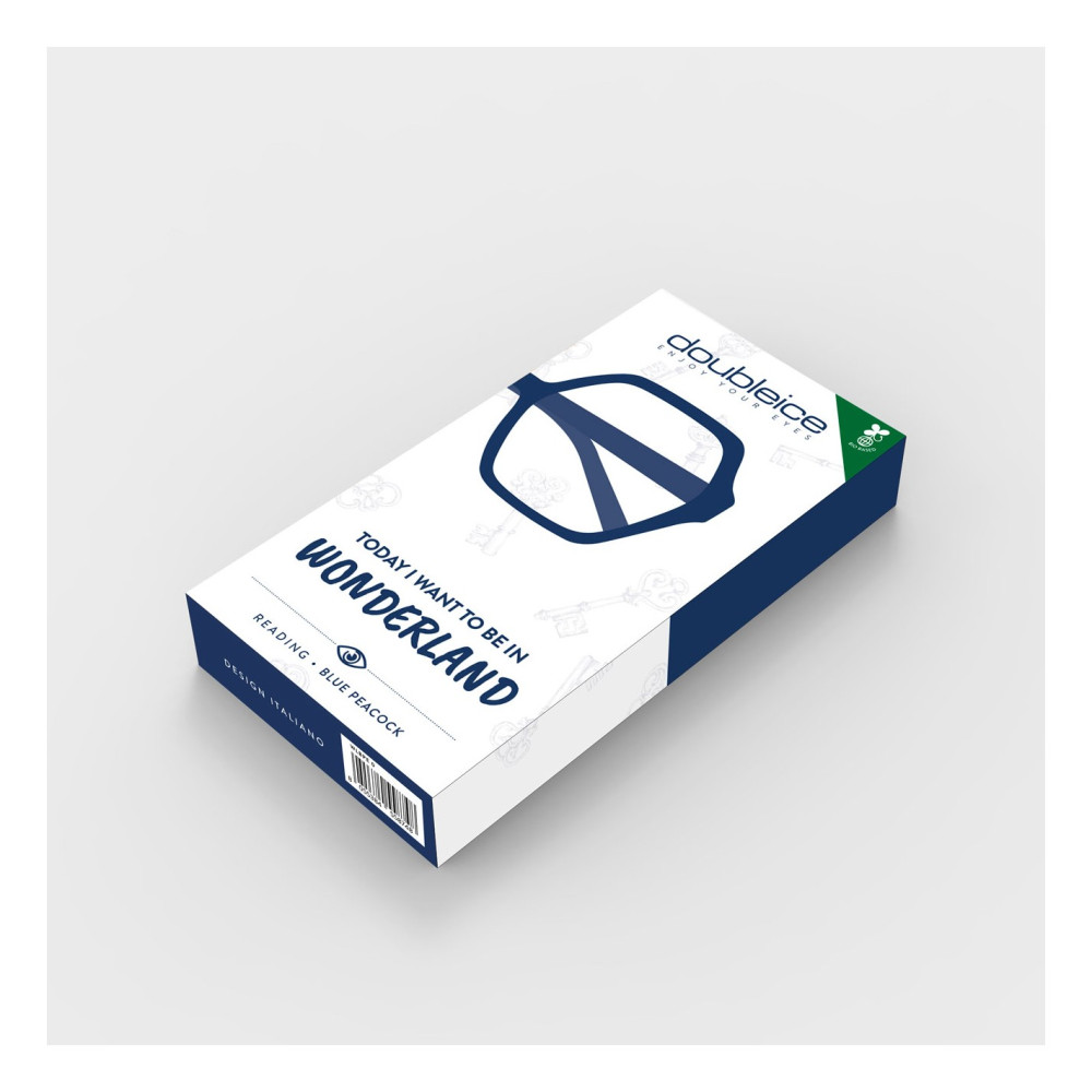 Wonderland blue bio reading glasses aka blue Peacock are oversized lookers and made of 45% castor oil adding a green element to these blue reading glasses. We are sure Alice would have approved. especially with their fabulous colour and flex temples for a comfort fit. In fact the White rabbit has been seen wearing them!