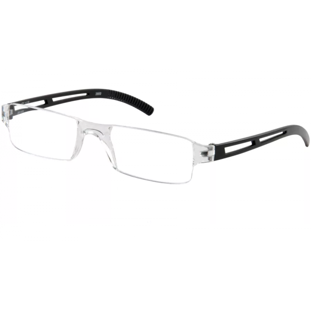 Crafted for those who cherish both form and function, these glasses feature a minimalist crystal-clear plastic frame design with black temples. Lightweight and comfortable to wear for extended periods, these glasses weigh only 16 grams, making them barely noticeable yet remarkably durable. A special highlight are the colored temples, which skilfully stand out and create an anti-slip effect thanks to their ribbed end.