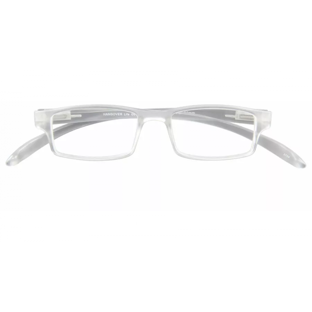 I Need You Hangover Life crystal slimline reading glasses for men and women. Durable plastic flexible frame and case from German designer I Need You. Frame 134 temple 160 lens width 50 depth 29 nose 18 all in mm
